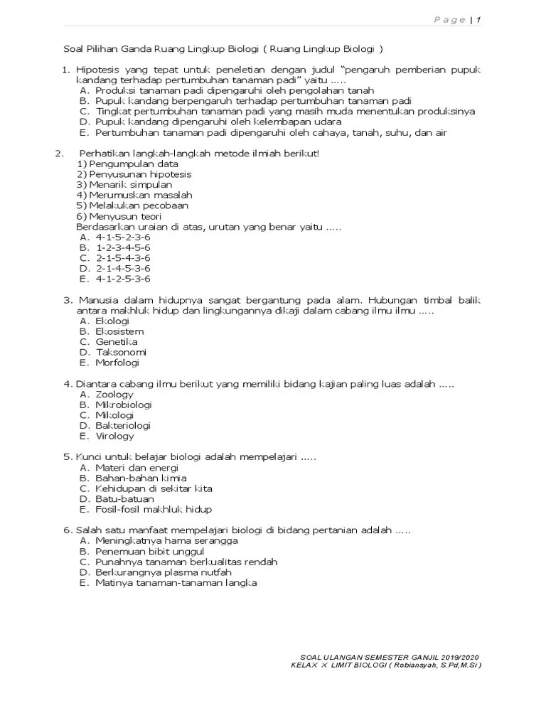 Soal Materi Ruang Lingkup Biologi : Soal Latihan Bab Ruang Lingkup Biologi Blog Masiki / Hipotesis untuk peneletian dengan judul "pengaruh pemberian pupuk urea terhadap pertumbuhan tanaman jagung" adalah …. Terdiri dari 40 soal dan meliputi bebrapa subtopik . Akses sumber materi soal langsung di kejarsoal! Soallatihan #biologi video pembahasan soal latihan bab 1 ruang lingkup biologi.materi soal mengenai metode ilmiah dan cabang ilmu biologi. Kali ini saya akan coba bagikan contoh soal ulangan atau penilaian harian biologi kelas 10 semester ganjil bab hakikat ruang lingkup biologi . Biologi berasal dari bahasa yunani yaitu bios yang berarti.
